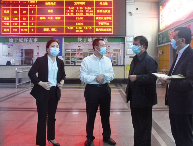 5月20日下午,吉安市人大副主任、市總工會(huì)主席孫勁濤,副主席張劍濤一行來到吉安長運(yùn)客運(yùn)中心站實(shí)地檢查車站疫